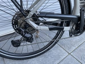 | Uitrusting: | verende voorvork, verende zadelpen, ringslot, systeem bagagedrager, kettingscherm, Elektronische duwhulp, spatborden |