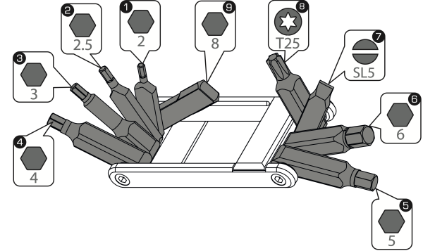 • Inbus 2 / 2,5 / 3 / 4 / 5 / 6 / 8
