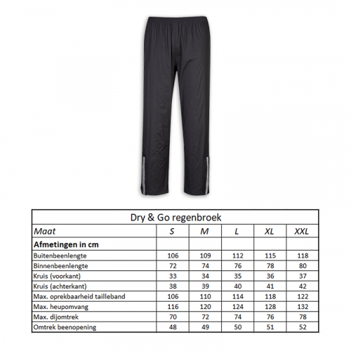 Regenbroek ZWART MAAT S,M.L.XL
