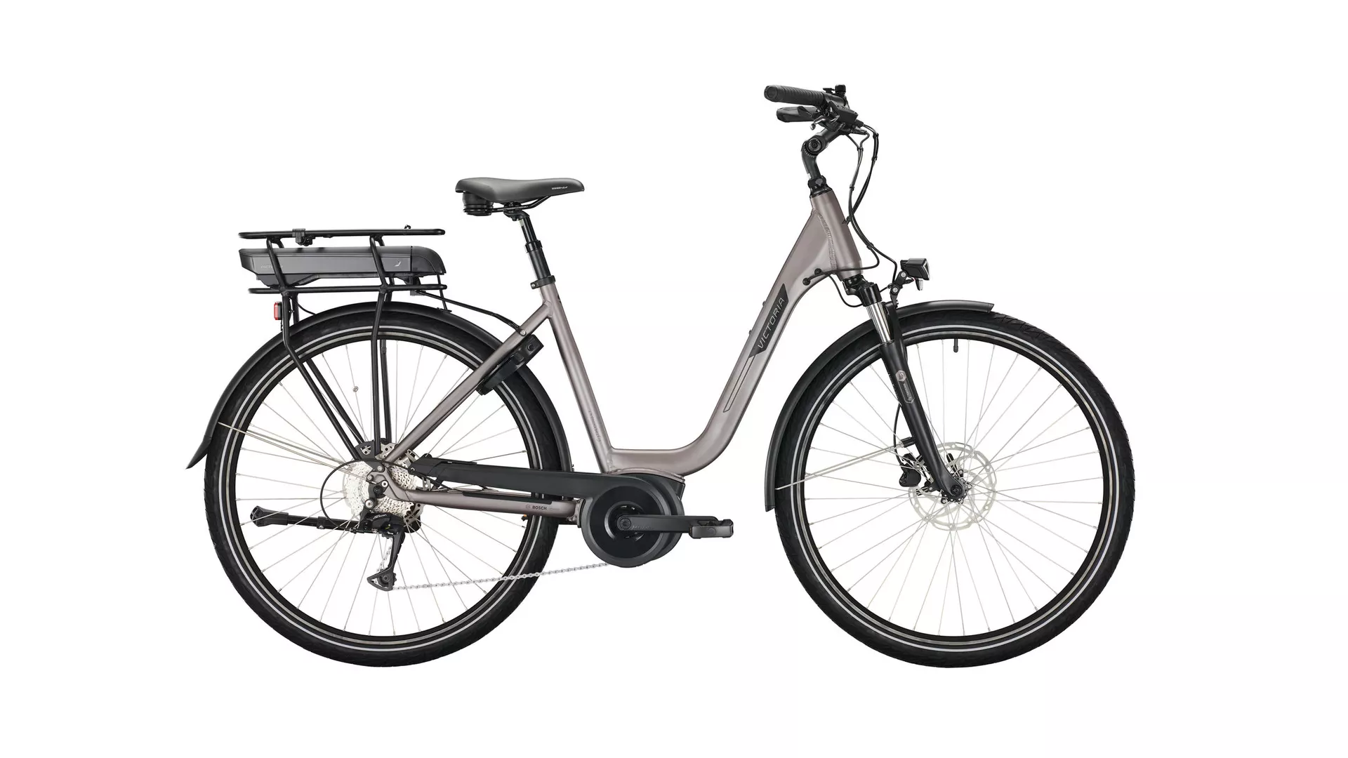 | Uitrusting: | verende voorvork, verende zadelpen, ringslot, systeem bagagedrager, kettingscherm, Elektronische duwhulp, spatborden |